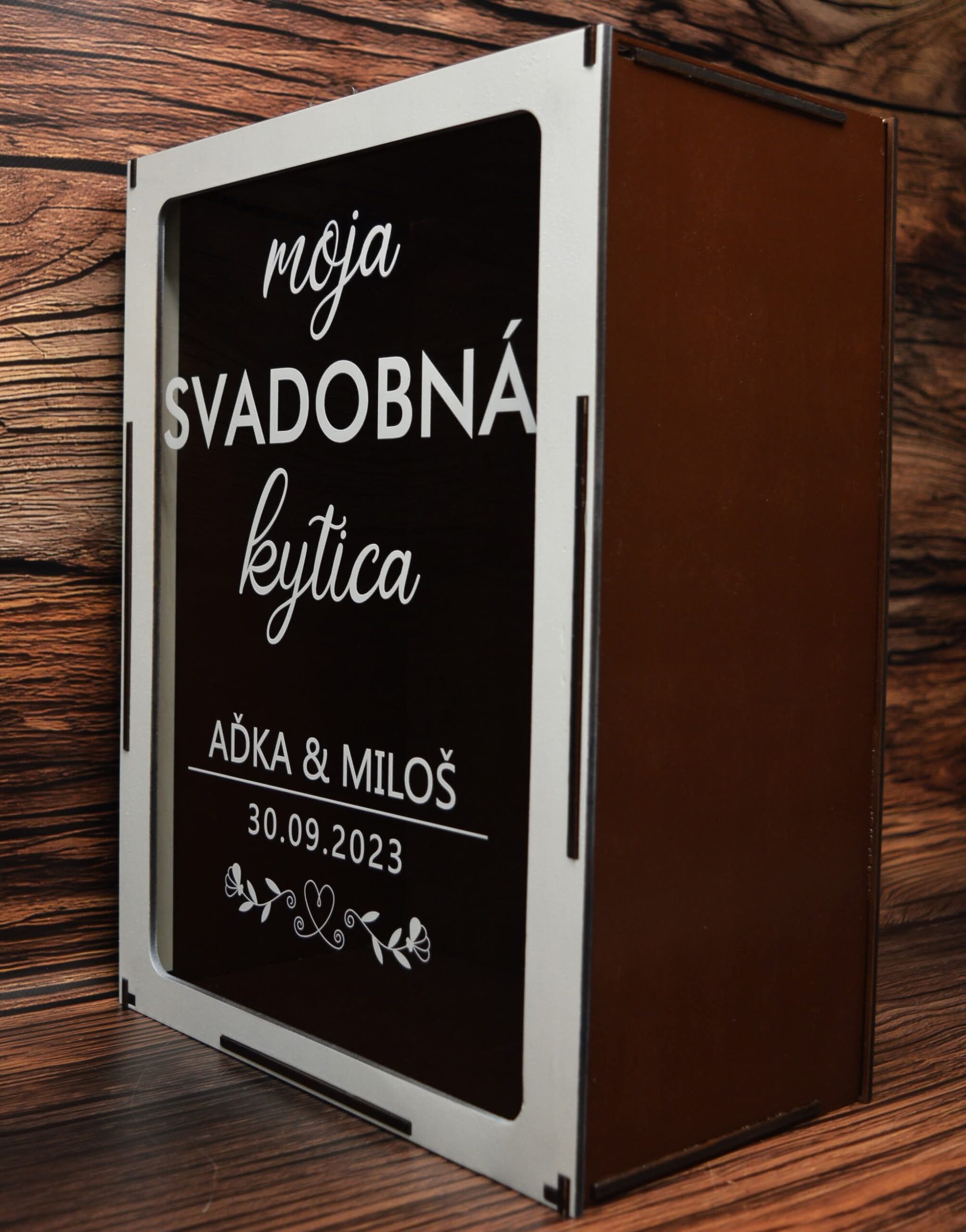 Elegantný box na svadobnú kyticu je dokonalým doplnkom pre každého, kto si chce zachovať spomienku na svoj veľký deň. Tento personalizovaný box je výnimočný svojím dizajnom a kvalitným spracovaním.