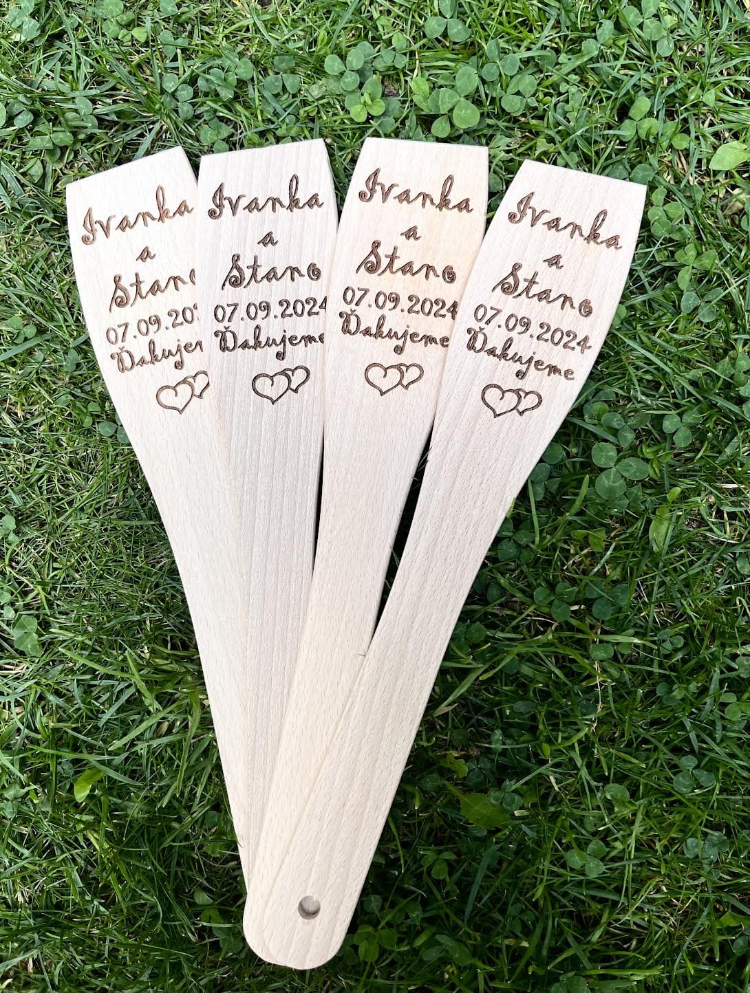 Táto drevená vareška s gravírovaním  je originálnym darčekom a praktickým kuchynským doplnkom. Gravírovanie obsahuje mená, dátum a symbol srdiečok, vďaka čomu je perfektným suvenírom na svadby, výročia či iné významné udalosti.