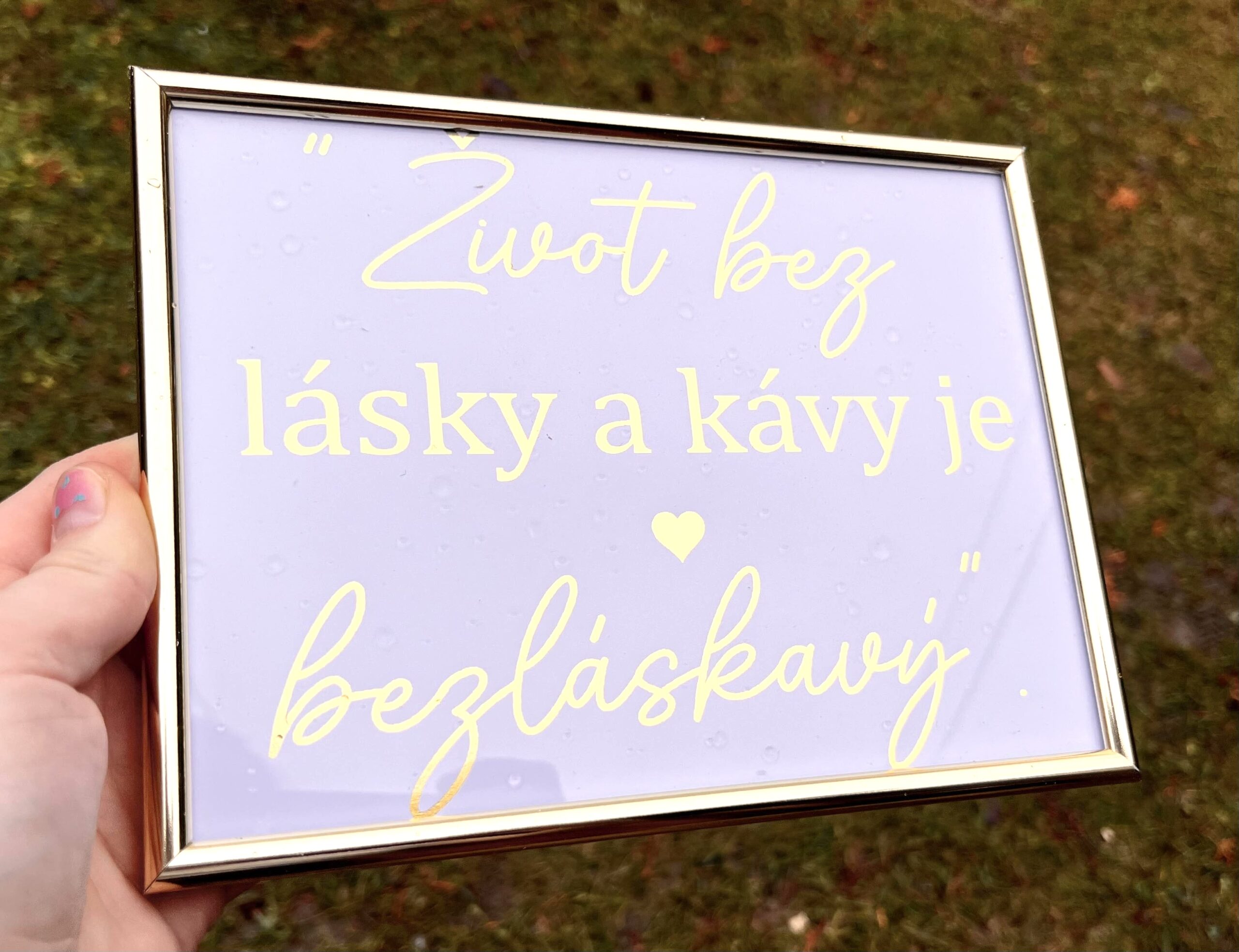 Kartička je osadená v zlatom ráme, ktorý podčiarkuje jej luxusný vzhľad a zároveň ju robí praktickou na umiestnenie na stôl, stojan alebo poličku. Svojím dizajnom a posolstvom je ideálna ako dekorácia, ktorá pridá štýl a úsmev každému priestoru.