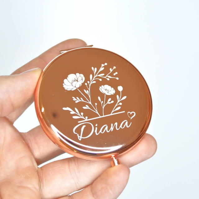 Medené zrkadielko s menom a nádherným motívom kvetov je dokonalým spojením elegancie a osobného štýlu. Tento jedinečný doplnok vyniká svojím teplým medeným leskom a detailným gravírovaním kvetov, ktoré symbolizujú jemnosť a krásu. Gravírované meno pridáva osobný dotyk, vďaka ktorému sa zrkadielko stáva nielen praktickým, ale aj výnimočným darčekom.