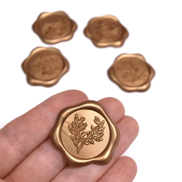 Pečať na obálku zlato-bronzová dodá vašim oznámeniam a pozvánkam okamžitý „wow“ efekt. Teplý odtieň medzi zlatou a bronzovou pôsobí elegantne a luxusne, vďaka čomu aj obyčajná obálka vyzerá ako malý darček. Pečať je ideálna na svadobné oznámenia, pozvánky, poďakovania, menovky aj darčekové balenie.