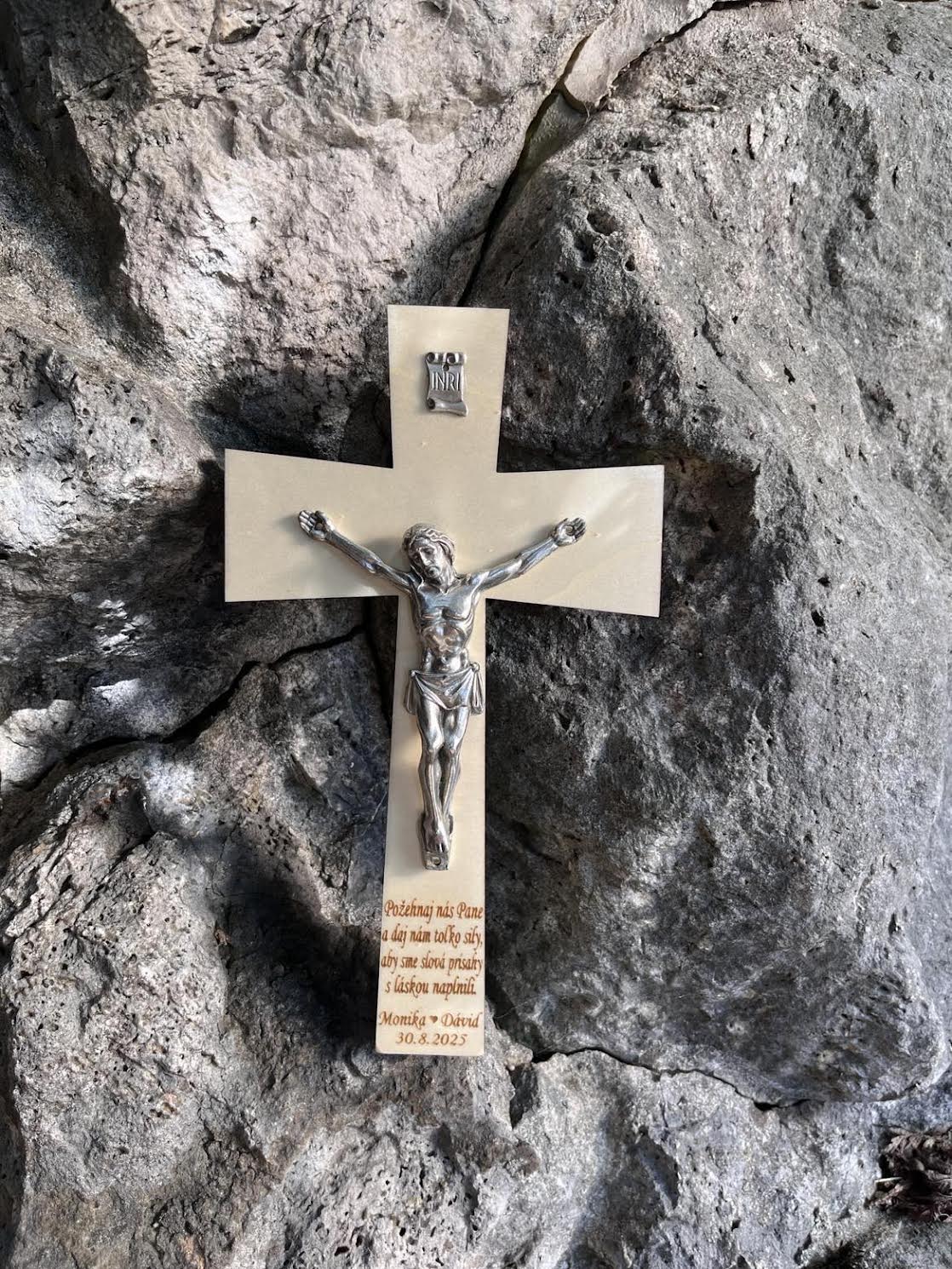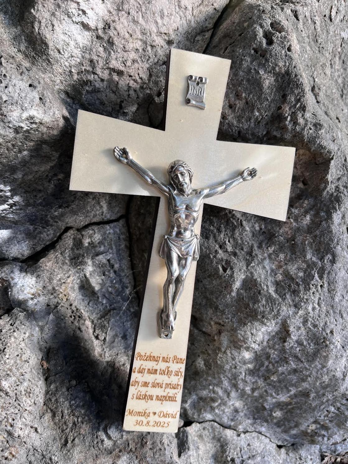 Mená a dátum svadby prosím uveďte do poznámky pri objednávke. Ak si vyberiete variantu „text na mieru “ tak Vám vyhotovíme krížik s Vašim textom podľa priania.