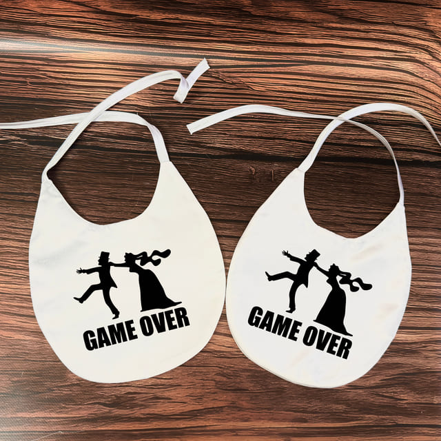 Vtipné svadobné podbradníky s motívom „Game Over“ sú originálny doplnok na svadbu alebo darček pre novomanželov.
